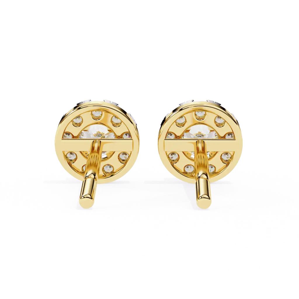 The Enchanted Lotus round brilliant cut diamond earrings feature a minimalist design that beautifully highlights the brilliance of each diamond. Set in a simple yet elegant framework, these earrings offer a timeless look that complements any outfit. Perfect for everyday wear or special occasions, they embody understated sophistication and charm.