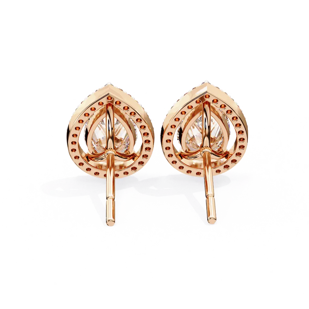 These fascinating pear-shaped diamond earrings feature a stunning halo setting that amplifies their brilliance and elegance. Each pear-shaped diamond is surrounded by a delicate circle of smaller diamonds, creating a striking contrast and enhancing the overall sparkle. Perfect for special occasions, these earrings offer a luxurious touch to any ensemble.