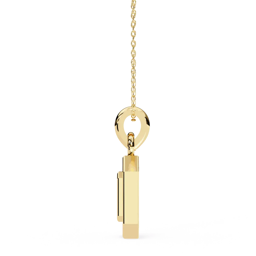 Introducing our Square-Shaped Pendant with Round Brilliant Cut Diamond, a perfect blend of contemporary design and classic elegance. This striking piece features a dazzling round brilliant-cut diamond set within a sleek square-shaped frame, creating a unique and eye-catching silhouette. Crafted from high-quality metal, the pendant hangs delicately on a refined chain, making it ideal for any occasion. Whether worn alone or layered with other pieces, this pendant adds a touch of sophistication to your jewelry collection and makes a thoughtful gift for someone special.