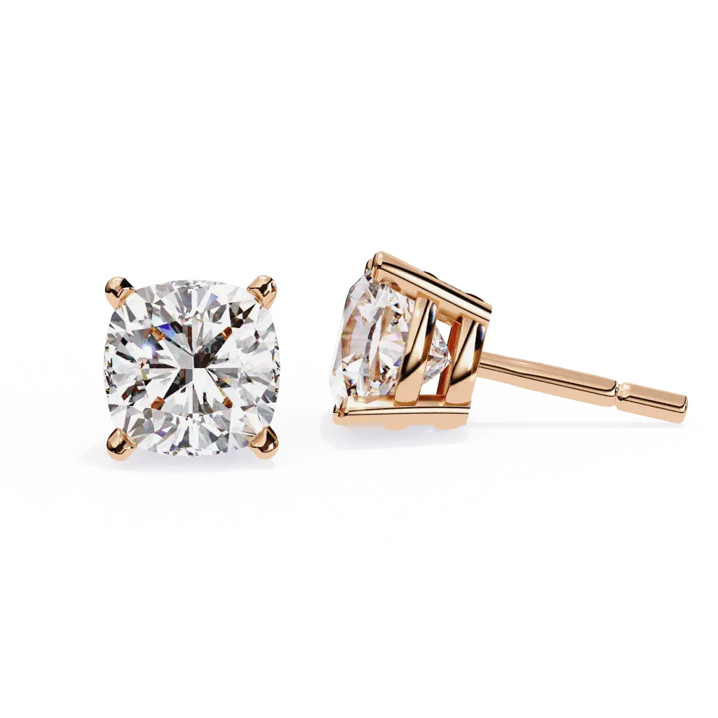These graceful cushion square diamond stud earrings feature elegantly cut diamonds that blend classic charm with modern sophistication. The soft corners of the cushion cut enhance the stones' brilliance, while a secure setting showcases their beauty. Perfect for any occasion, these earrings add a touch of refinement to any outfit.