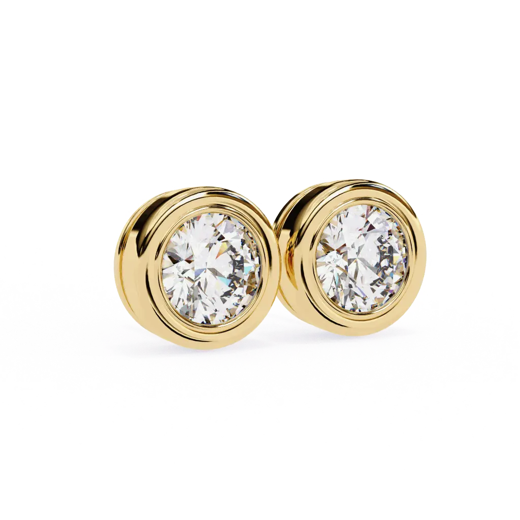 These classic bezel set diamond stud earrings feature elegantly secured diamonds encircled by a sleek metal rim, enhancing their brilliance and providing a modern touch. The bezel setting offers a refined look while ensuring durability, making these earrings perfect for both everyday wear and special occasions. A timeless addition to any jewelry collection.
